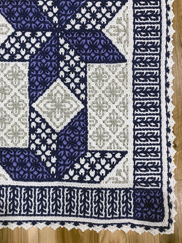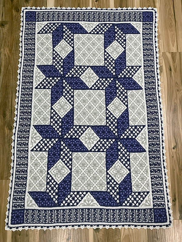 Do you love the look of blackwork embroidery or a comfy vintage quilt? This interlocking filet crochet afghan combines both styles to create the Blackwork Star Flower Afghan! Blackwork-style designs create the different “quilt fabrics” and a lacy picot border surrounds the afghan to complete the look.