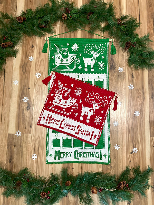 This Mix-It-Up Advent Calendars pattern set is like a choose-your-own adventure! It includes three festive top designs, two calendar styles, and four greetings, or you can personalize your own greeting with the included lettering and blank charts!
