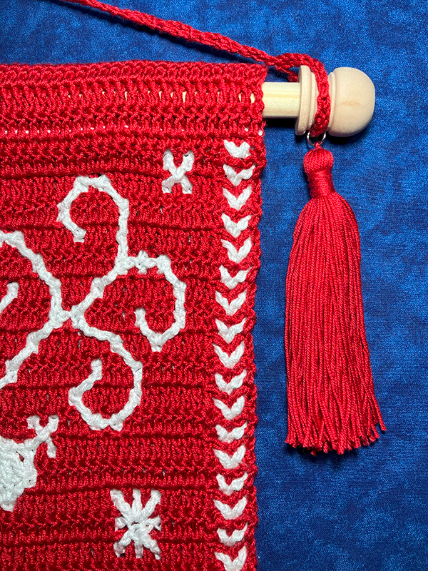 If you haven’t tried diagonals on an interlocking filet mesh project yet, you can learn how on my YouTube Channel by watching “Interlocking Filet Mesh: From Start to Diagonals!” To learn about reading charts as well as solid stitches and long diagonals, watch “Blackwork Embroidery to Interlocking Filet Crochet!” You can also read about this technique on my blog!