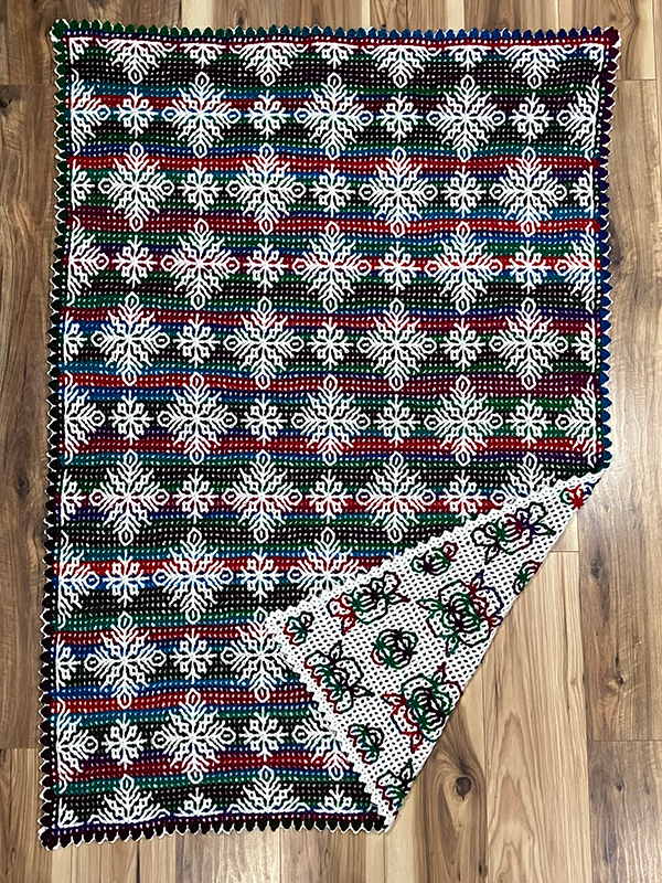 This reversible Snowflakes and Roses Afghan has year-round versatility! Display the “snowflakes” side during cold weather, then flip it over to reveal the “roses” side when the weather warms up again!