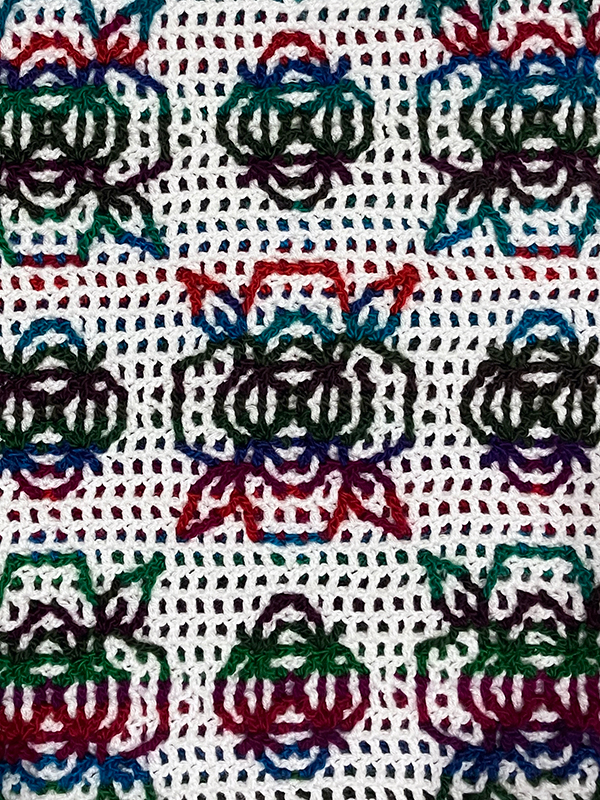 This pattern provides both row-by-row written instructions as well as design charts for reference. Since this design has many diagonal stitches, it is recommended for someone who is comfortable with the interlocking filet mesh technique.