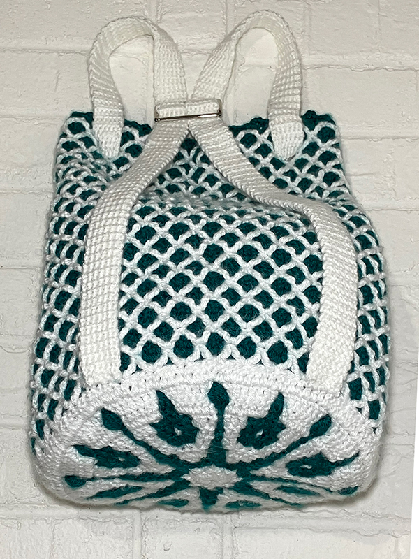 This shoulder bag is worked in the round in the interlocking crochet technique from the center of the starburst base to the top border and includes round-by-round written instructions as well as lots of photos! A chart for the shoulder bag side is provided for reference only.